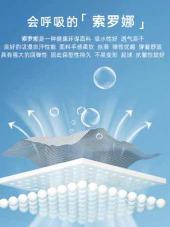 索罗娜是一种人造纤维,也叫 Sorona。索罗娜是由美国杜邦公司多年创新研发,其原料 37% 来自每年可循环再生的植物